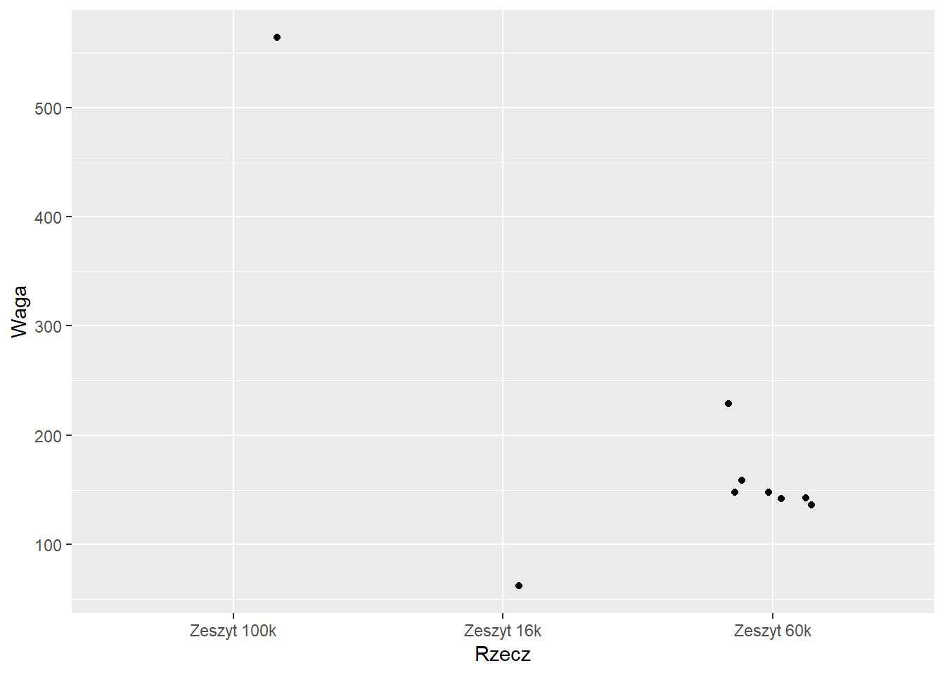 ggplot(aes(x = Rzecz, y = Waga)) +